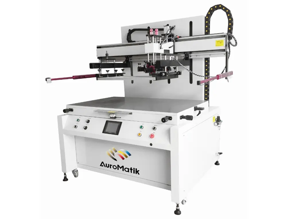 A máquina com acionamento elétrico será mais estável e precisa do que o tipo com acionamento pneumático. Nossa impressora de tela plana tem uma tolerância de impressão de menos de 0,04 mm. O motor e o controlador de marcas famosas tornam o funcionamento da máquina estável.